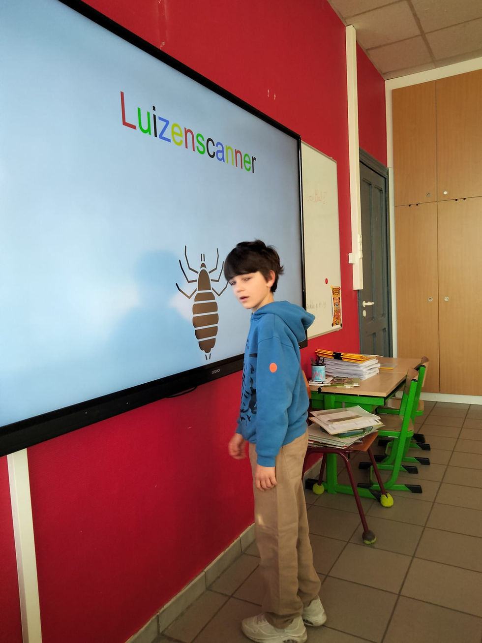Ons digibord kon scannen op luizen. Hiervoor moest je je hoofd tegen het bord houden en draaien.