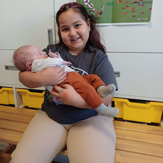 Woensdag kwamen de mama en papa van Maithé met baby Matthew op bezoek .