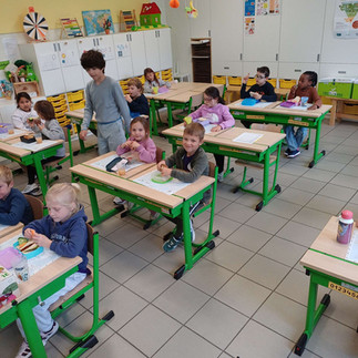 We krijgen gezonde boterhammetjes en kiezen zelf fruit en groenten.