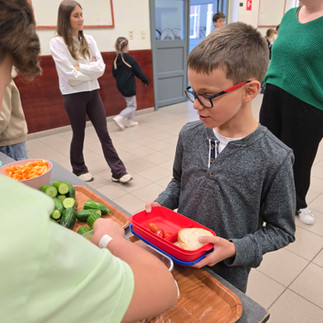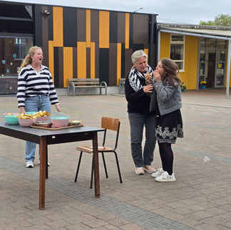 Vandaag gingen we van start met ons eerste arrangement: eet gezond, heel het jaar rond. Door middel van een toneeltje werd duidelijk gemaakt hoe belangrijk het is om 's morgens goed te ontbijten. 's Middags mocht iedereen de brooddoos vullen met een gezonde lunch.